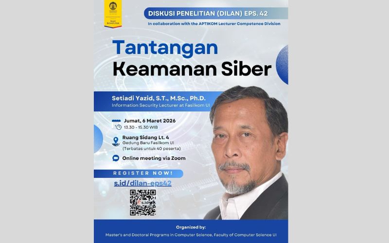 Presenter’s Short Biography: Setiadi Yazid, S.T., M.Sc., Ph.D. adalah staf pengajar senior dan peneliti di Fakultas Ilmu Komputer, Universitas Indonesia (Fasilkom UI). Beliau memiliki latar belakang pendidikan sarjana di Teknik Elektro ITB, serta meraih gelar Master dan Ph.D. dari Queen’s University, Kanada. Sebagai pakar di bidang Keamanan Jaringan dan Sistem Informasi, fokus riset beliau mencakup Network Security, Information Security Management, serta kebijakan privasi. Dedikasi beliau dalam pengembangan keamanan siber di Indonesia telah menjadikannya salah satu figur kunci dalam komunitas keamanan informasi nasional.