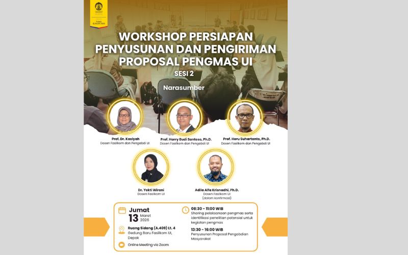 Bersama dengan ini umumkan Agenda SEMINAR yang dilaksanakan pada: Hari/Tanggal : Thursday, 4 December 2025 Waktu : 13.00–15.00 WIB Tempat : Ruang Sidang Lt. 4, Gedung Baru Fasilkom, Kampus UI Depok. Topik Research Computing and AI Infrastructure Pembicara Rikky Wenang Purbojati