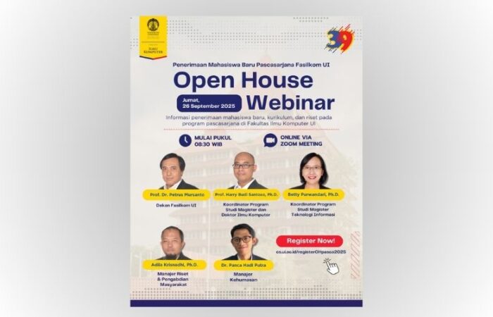 Fakultas Ilmu Komputer Universitas Indonesia menerima mahasiswa baru untuk semua program studi pada jenjang sarjana, magister, dan doktoral.